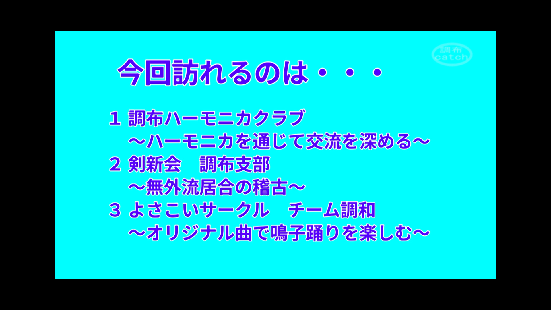 調布民サークル探訪今回は、「調布ㇵ―モニカクラブ」~ハーモニカを通じて交流を深める~、「剣新会 調布市部」~無外流居合の稽古~、「よさこいサークル チーム調和」~オリジナル曲で鳴子踊りを楽しむ~、の3つのサークルを訪ねました。