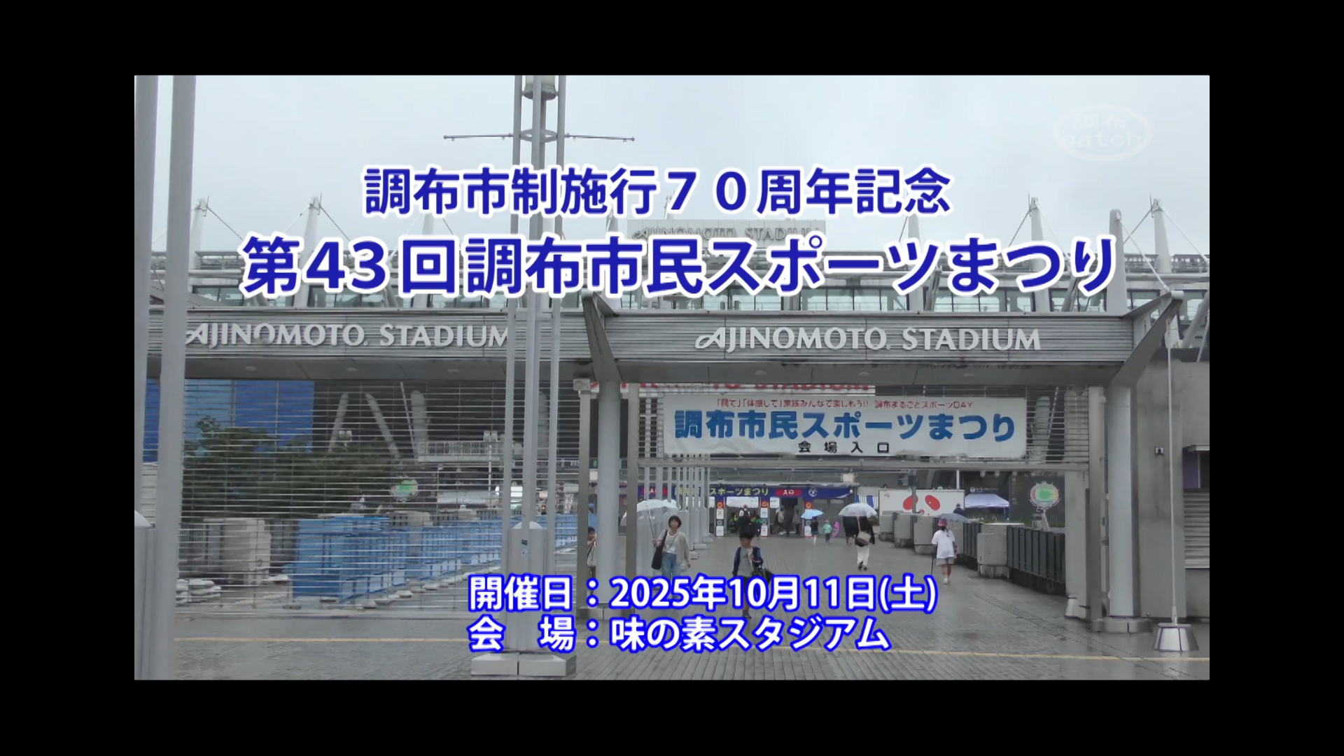 第43回調布市民スポーツまつり冷たい雨が朝から降り出した10月11日、調布市民スポーツまつりが、味の素スタジアムで開催されました。コンコースには、様々なスポーツ体験アトラクションがずらりと並び、多くの家族連れが次々にチャレンジしていました。雨の中来場した多くの人が、家族と一緒にスポーツの秋を元気いっぱいに楽しんでいました。