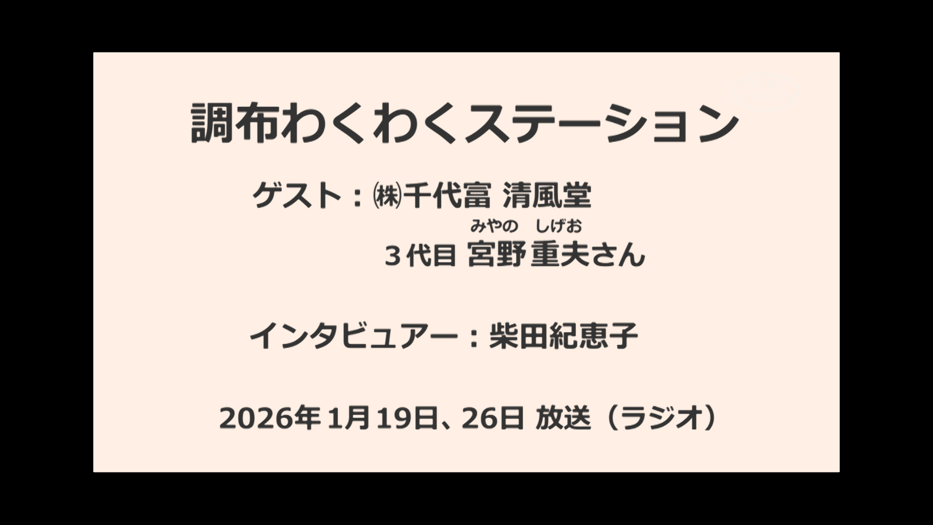 今年創業99年、調布の老舗和菓子店の3代目宮野さんに、調布の銘菓のお話などお伺いします。